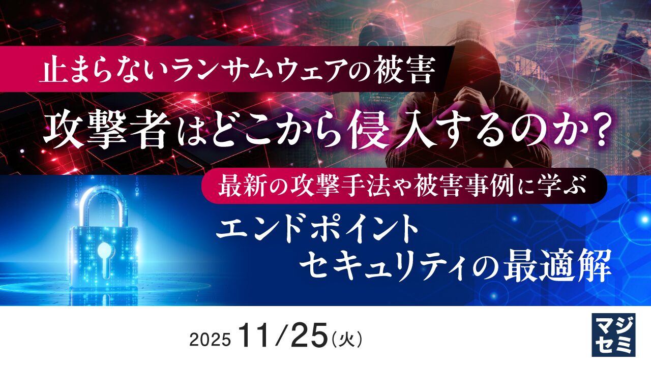 「止まらないランサムウェアの被害、攻撃者はどこから侵入するのか?~最新の攻撃手法や被害事例に学ぶ、エンドポイントセキュリティの最適解~」